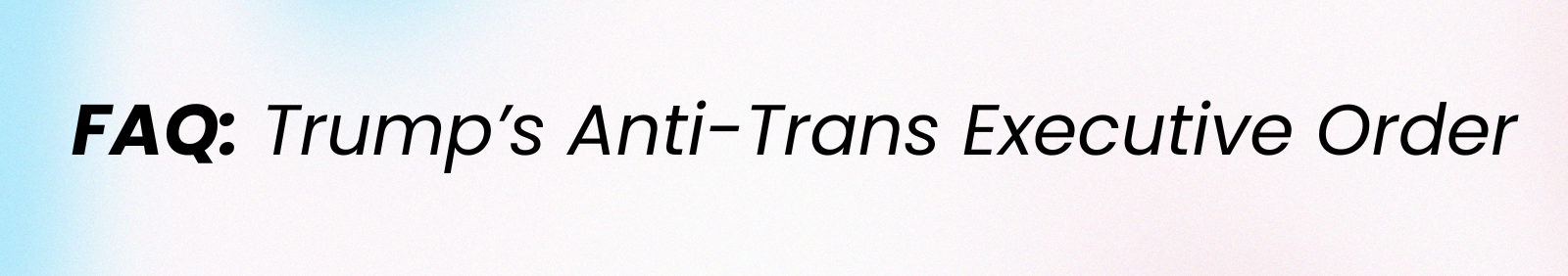 Gender Justice League strongly denounces the recent Executive Order by the Trump regime. While the following FAQ is not legal advice, it is our organization’s best understanding of the current status of the impacts of the most recent Executive Order as of Friday, January 24, 2025.